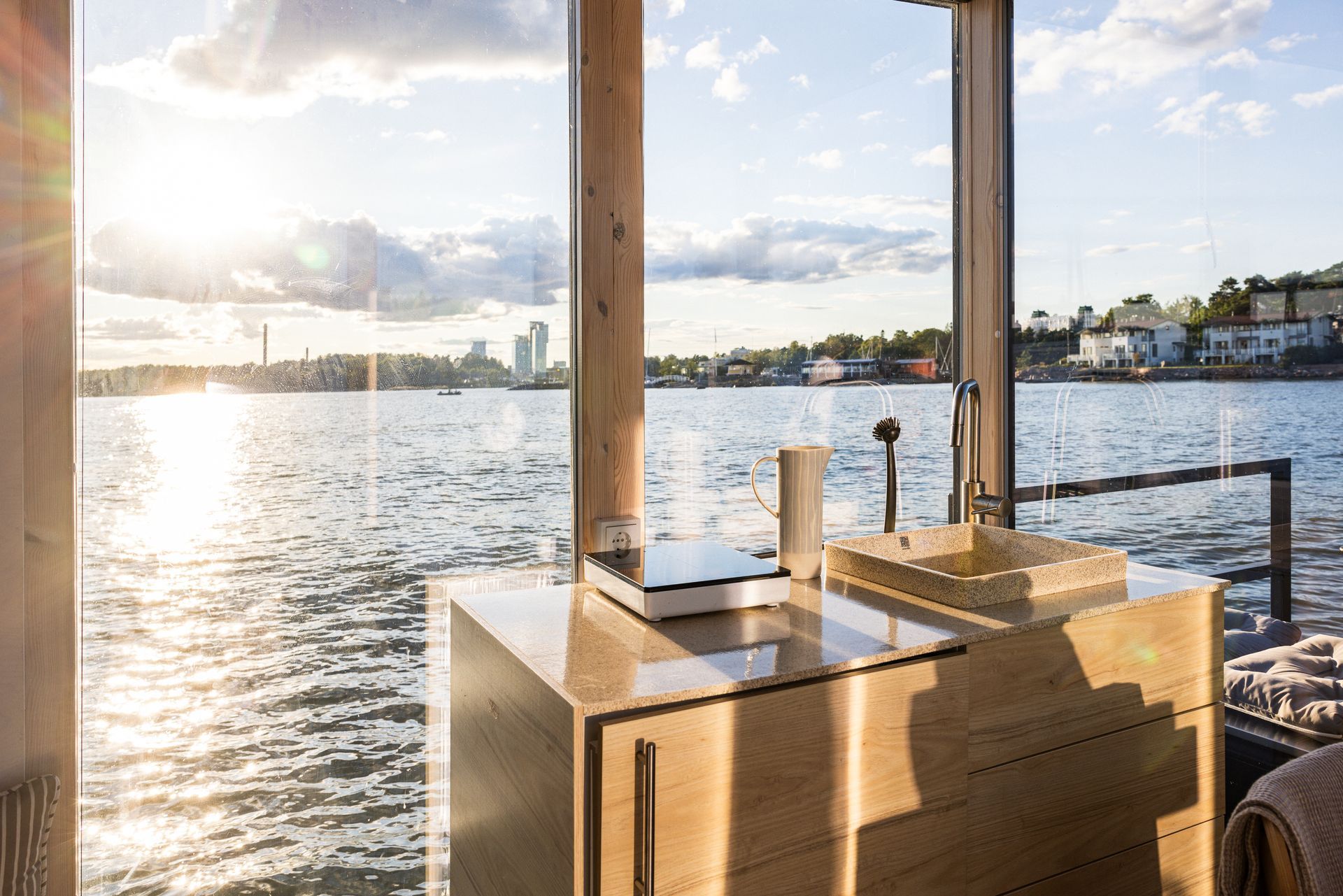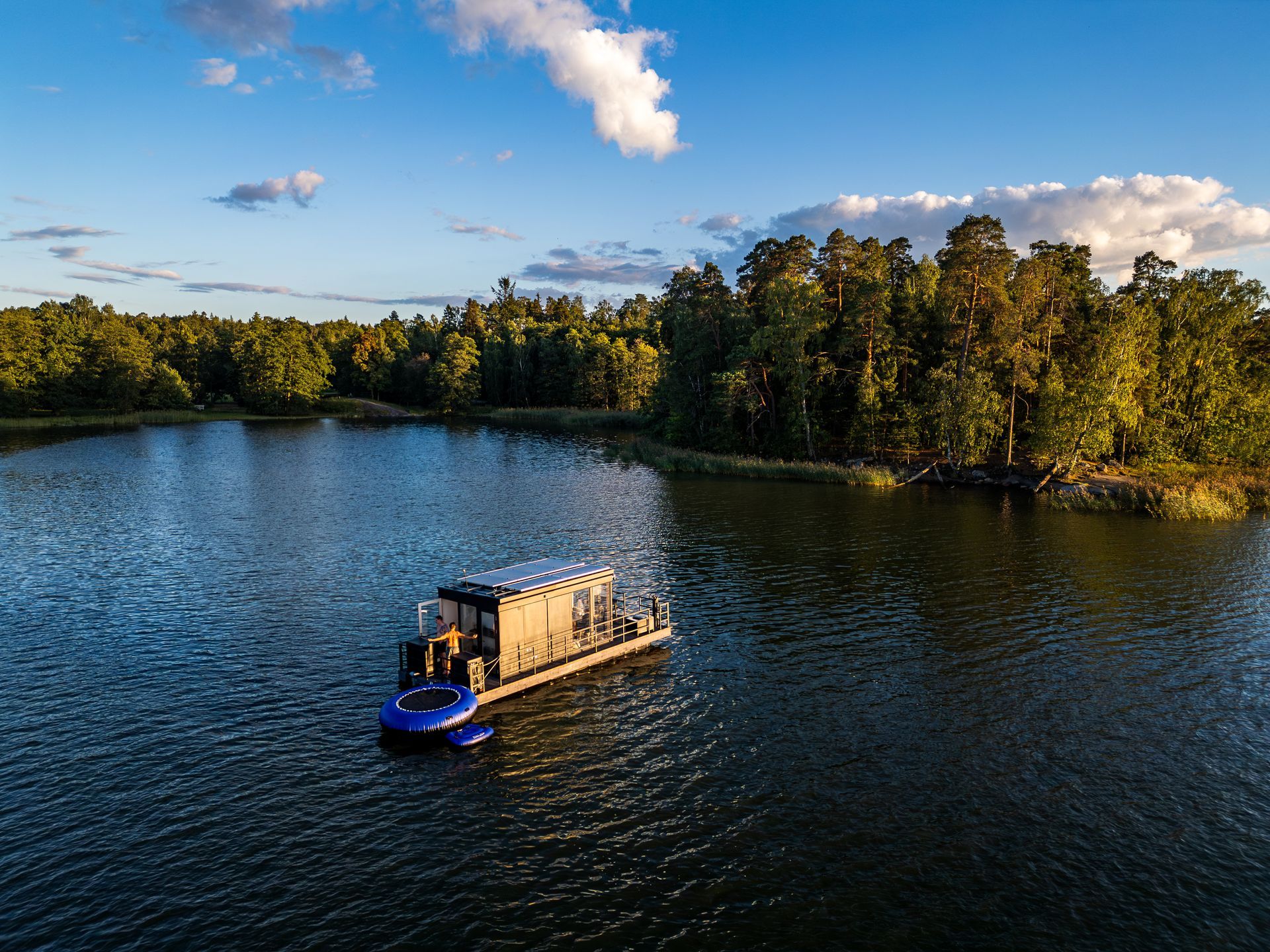 Nauti vesillä liikkumisesta tyylikkäällä, hyvin varustetulla ja hiljaisella Aqua Cabin -sähköveneellä. Veneen suurista ikkunoista maisemat avautuvat upeasti ja keulakannella on istuinryhmä ja grilli ja perässä 4 hengen sauna.